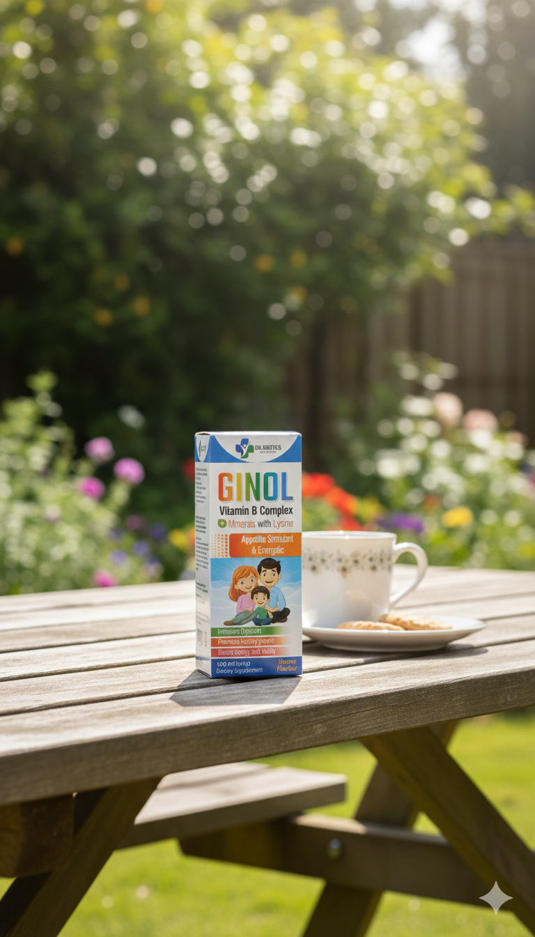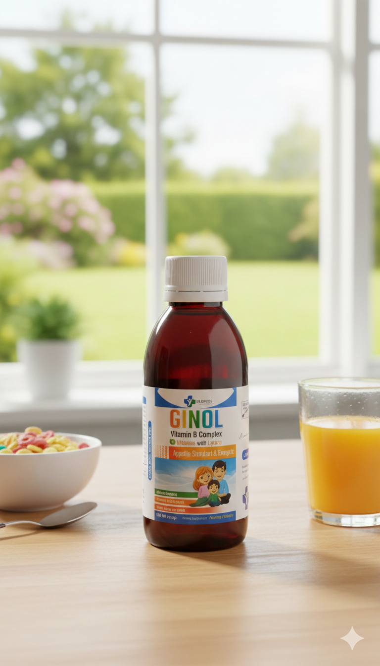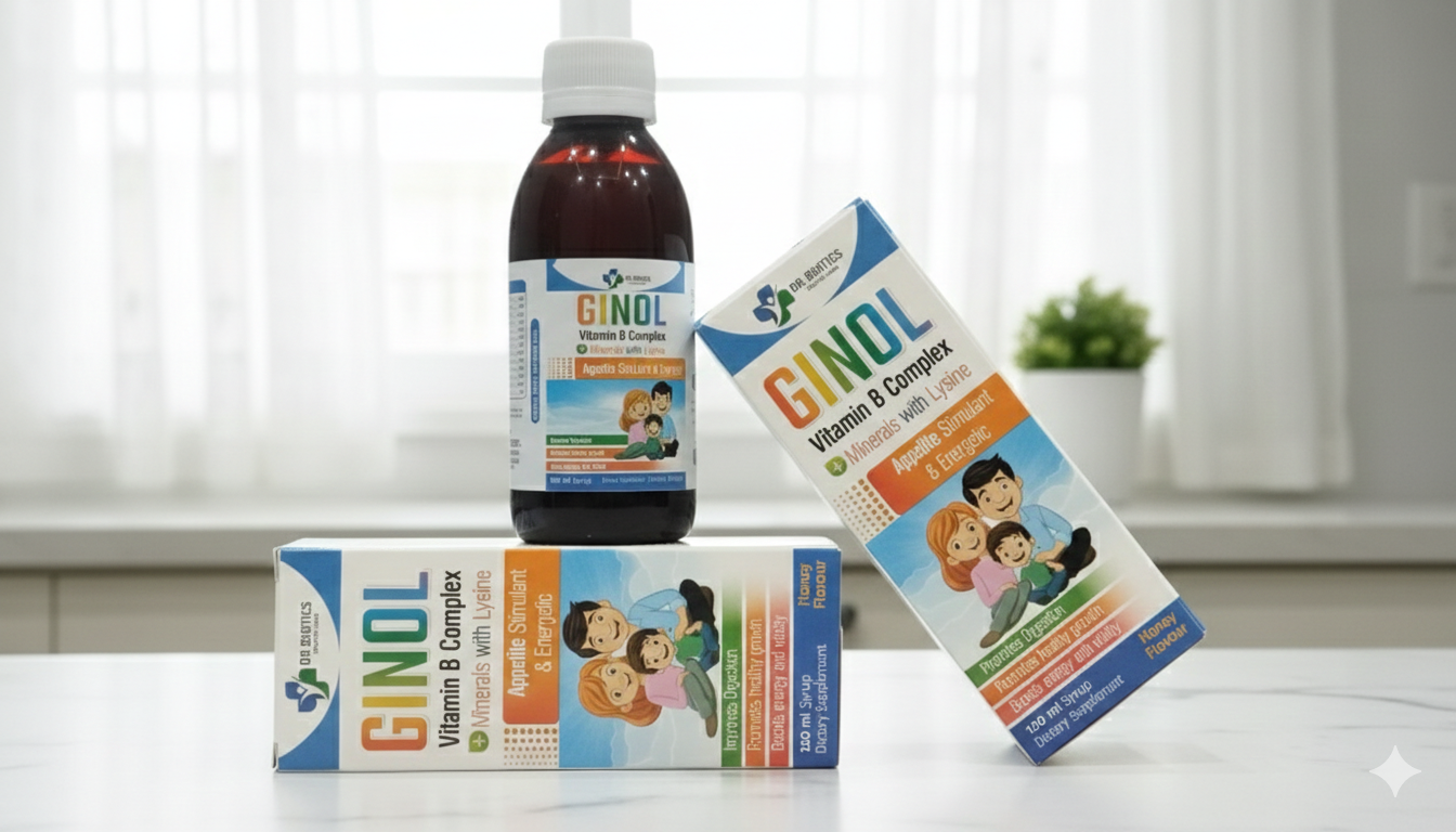 GINOL Vitamin B Complex Syrup is a powerful nutritional supplement formulated with Vitamin B-Complex, Lysine, and essential minerals to naturally improve appetite, support healthy growth, and boost daily energy levels. Ideal for kids, teens, and adults needing extra nutritional support, GINOL helps enhance digestion, metabolism, and overall vitality.